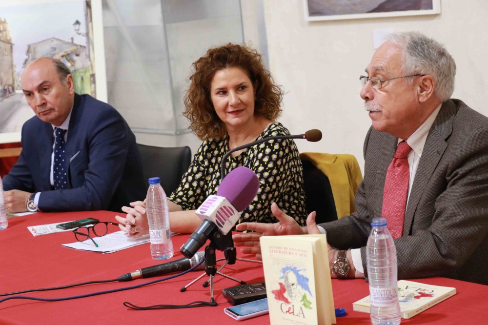 La alcaldesa de Almonacid, Elena Gordon, daba la bienvenida a los presentes en un acto en el que también han intervenido el presidente de la Diputación Provincial, José Manuel Latre, y el presidente de la Fundación Charo-Camilo José Cela, Camilo José Cela Conde, hijo del genial escritor.