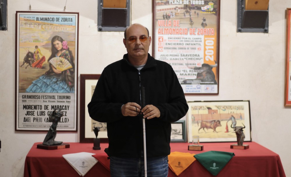 Almonacid de Zorita. 20 de octubre de 2018. Pedro Antonio Cañadillas es aficionado a los toros desde que tiene uso de razón. Siempre había vivido su afición con pasión, pero cuando la vida le jugó una mala pasada en forma de una retinosis pigmentaria que llegó sin avisar y que le dejó prácticamente ciego, la tauromaquia se ha convertido en algo esencial para él.